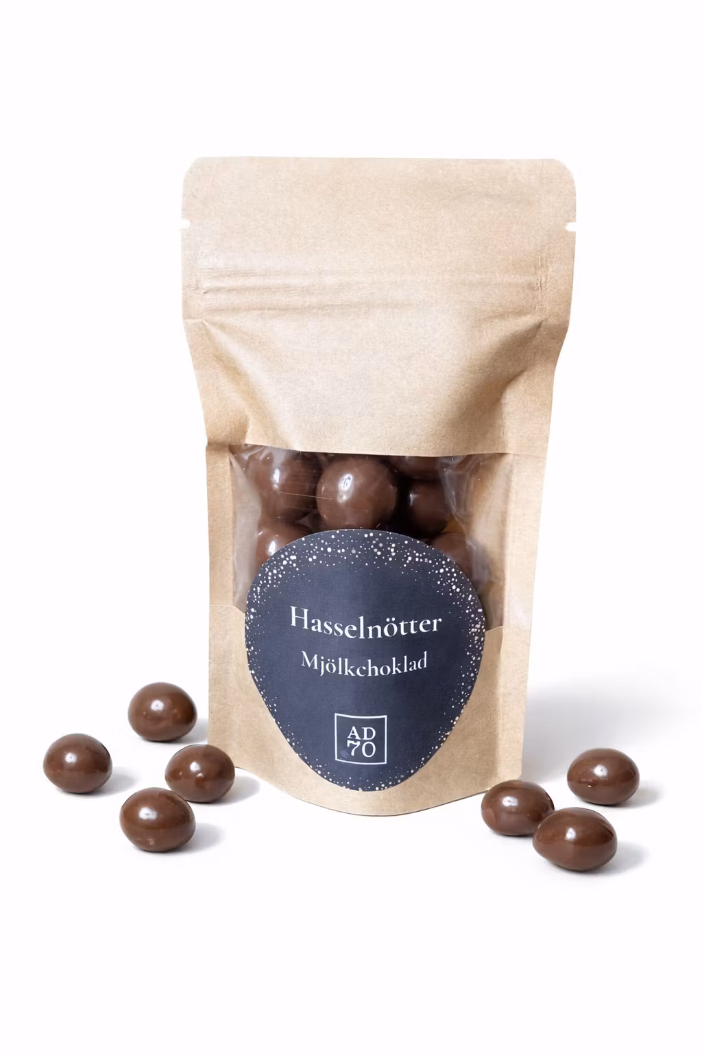 • 🍫 Hasselnötter dragerade med Felchlin Maracaibo Criolait 38 % mjölkchoklad
