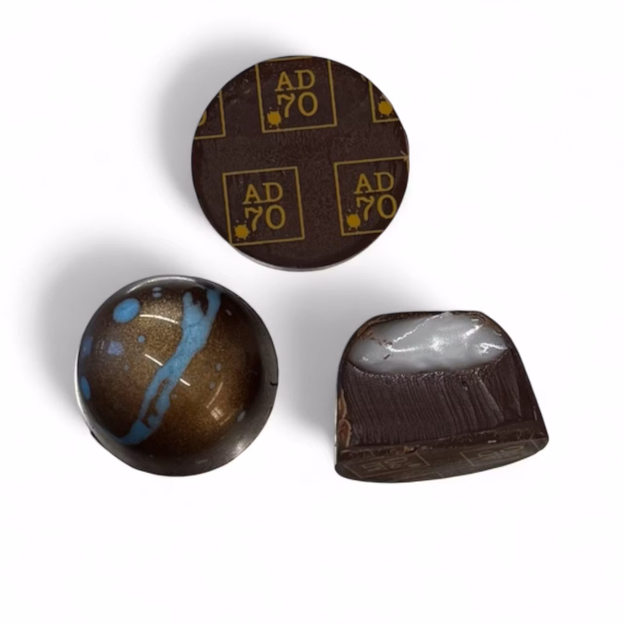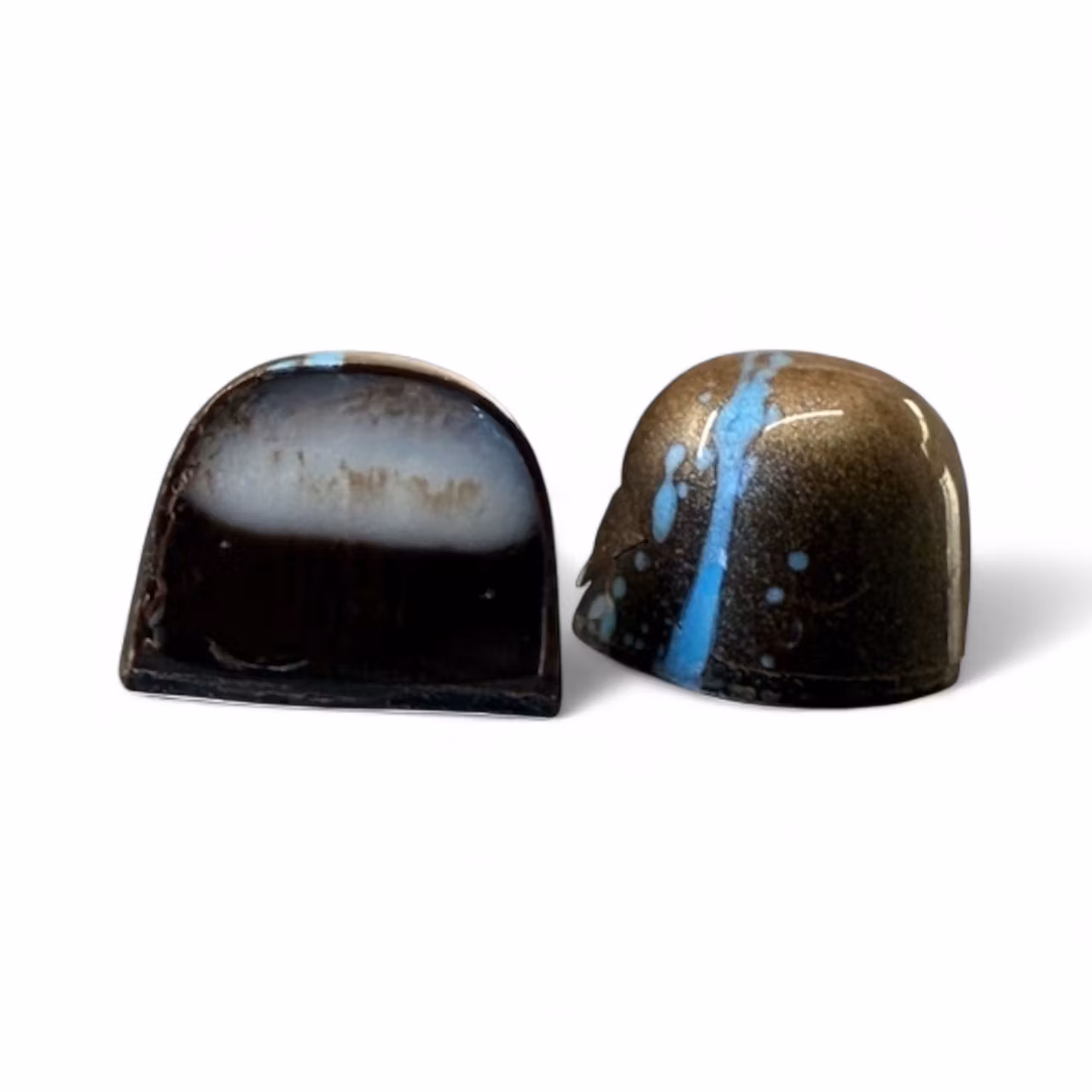 Socker, glukossirap, kakaobönor, GRÄDDE, kakaosmör, kakaomassa, vatten, SMÖR, sorbitol, invertsocker, karragenan, vanilj, pepparmyntsolja. Färgämnen: E172, E555, E555 (mica), E551, E133. Kan innehålla spår av: hasselnöt, mandel, mjölk. Innehåller azofärgämnen som kan ha en negativ effekt på barns beteende och koncentration. Näringsvärde Näringsvärde per 100 gram: Energi: 1968 kJ / 470 kcal Fett: 27,4 g varav mättat fett: 15,8 g Kolhydrater: 51,1 g varav sockerarter: 38,4 g Protein: 2,5 g Salt: 0,1 g