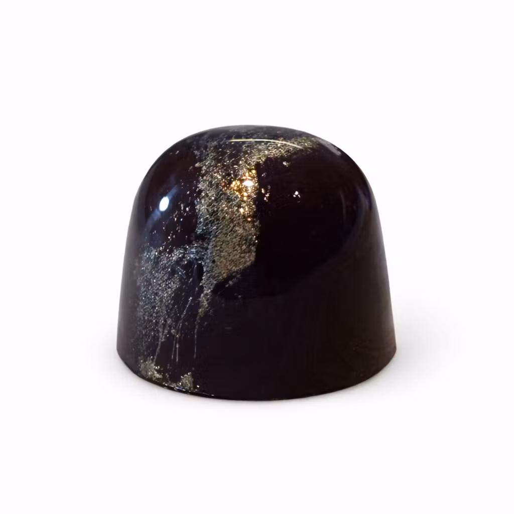 En pralin med ren chokladganache.Chokladen vi använder i denna pralin heter Rio Huimbi och kommer från Ecuador – från området kring floden med samma namn.Mörka