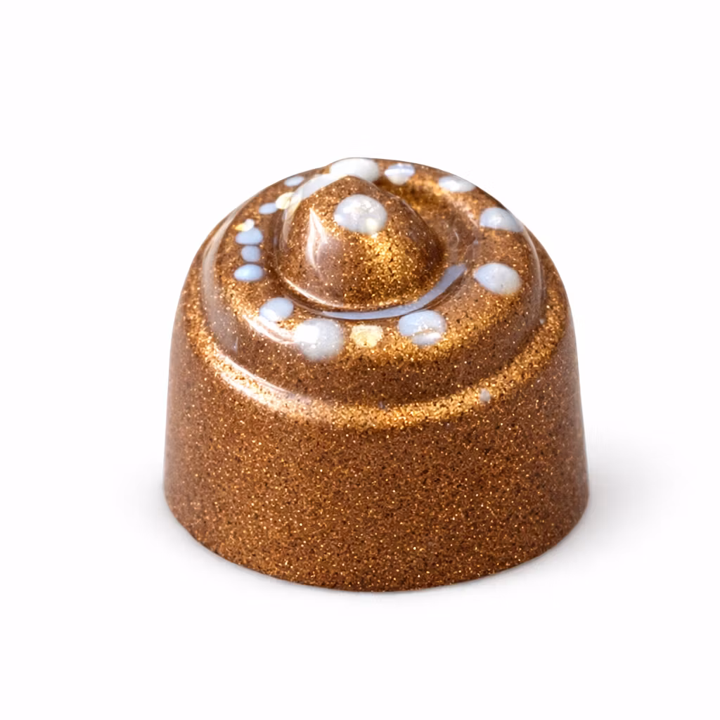En pralin med kanelkola och mjölkchokladganache, omsluten av karamellchoklad från Felchlin. Inspirationen är hämtad från smaken av en klassisk kanelbulle – men i chokladform. Ingredienslista