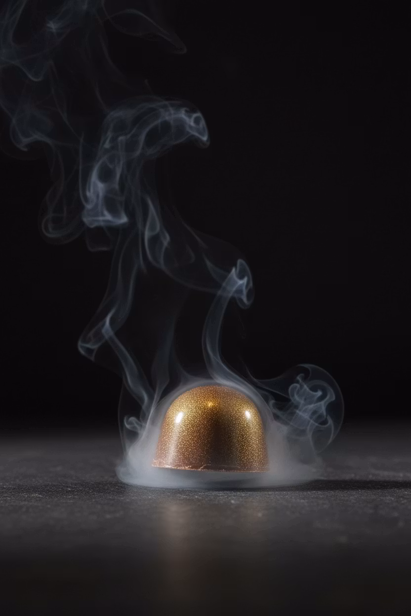 Mörk chokladganache och karamellganache smaksatta med rökig whisky från Mackmyra. En pralin med djup, efterklang och en tydligt vuxen smak. Ingredienslis